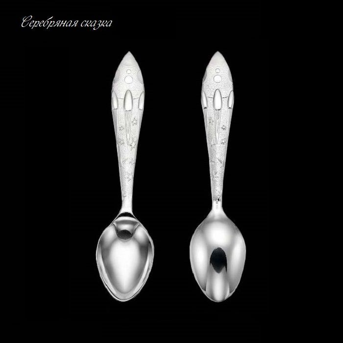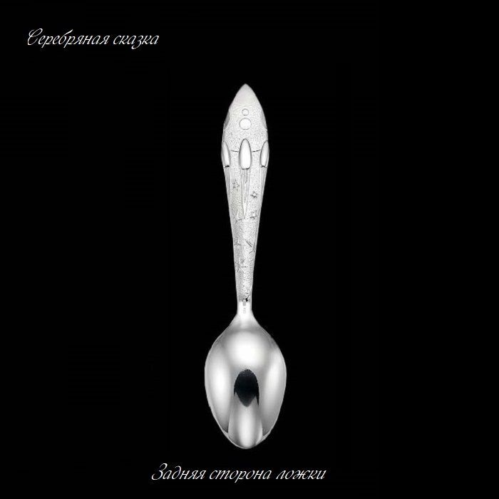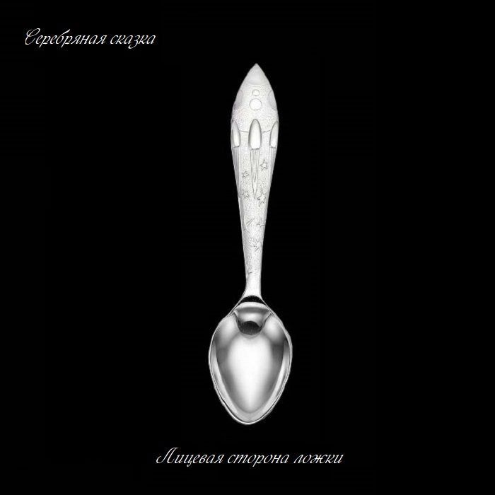 Серебряная ложка на зубок, в виде ракеты летящей по звездному небу... из серебра 925 пробы. Ложка имеет полноценный черпачок для кормления. Eсть клеймо мастерской и государственной инспекции. УИН прилагается.